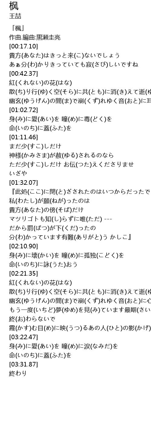| [00:00.00] | 「楓」 |