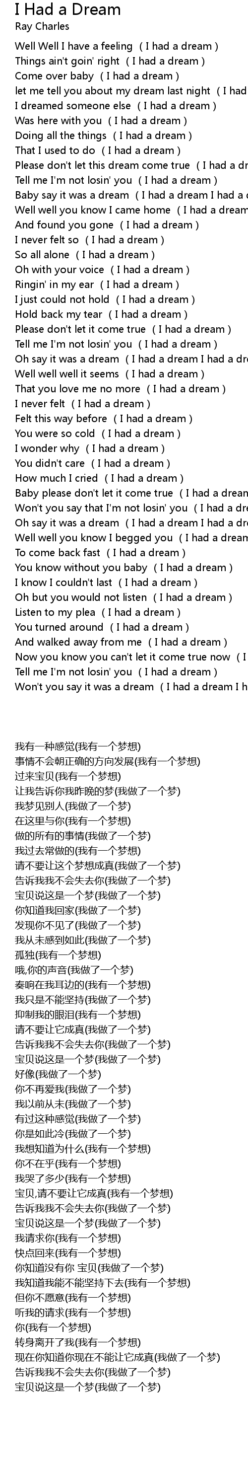 | [00:33.32] | Tell me I' m not losin' you I had a dream |