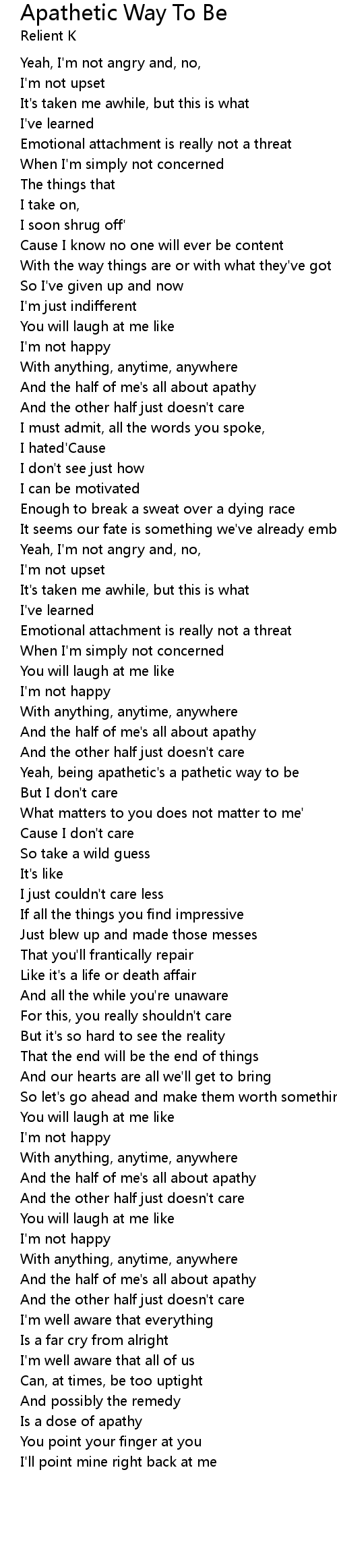 Yeah, being apathetic's a pathetic way to be |