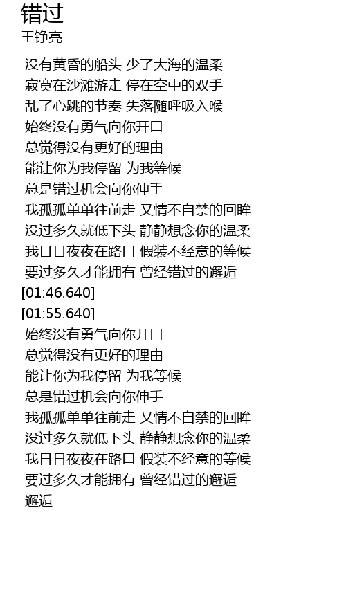 | [01:37.640] | 要过多久才能拥有 曾经错过的邂逅 |