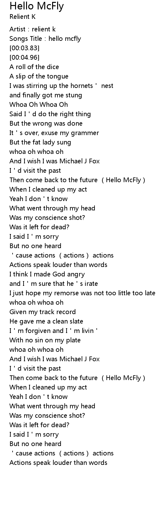 | [00:47.54] | Then come back to the future Hello McFly |