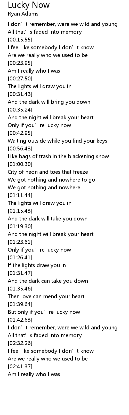 | [00:56.99] | Like bags of trash in the blackening snow |