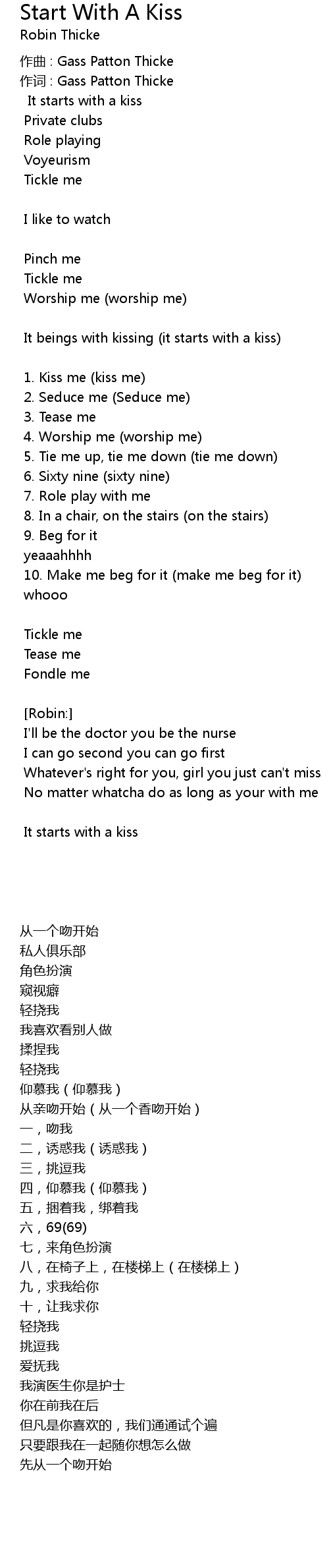 | It beings with kissing (it starts with a kiss) | |