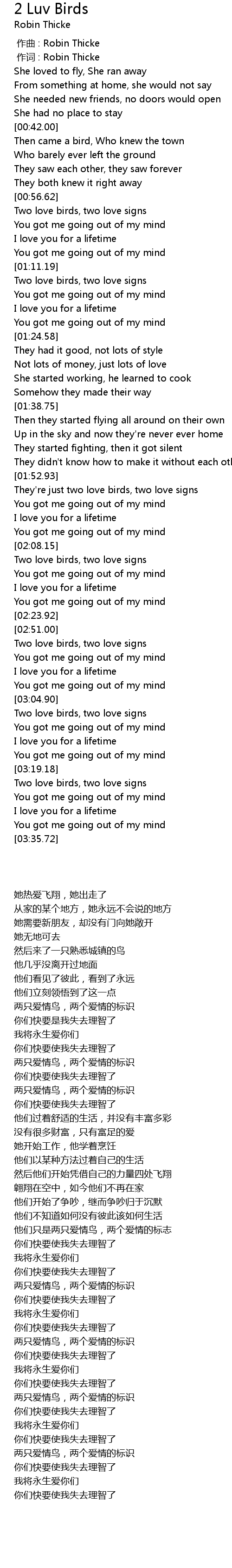 | [03:20.18] | 两只爱情鸟,两个爱情的标识 |