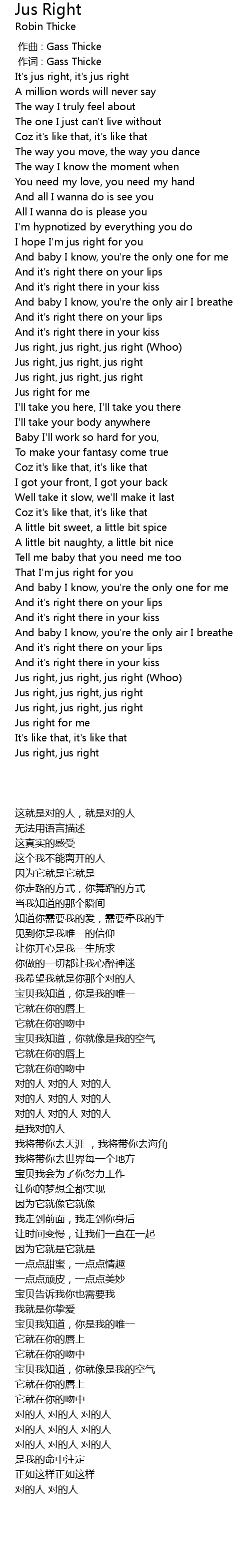 | [00:01.00] | 作词 : Gass Thicke |