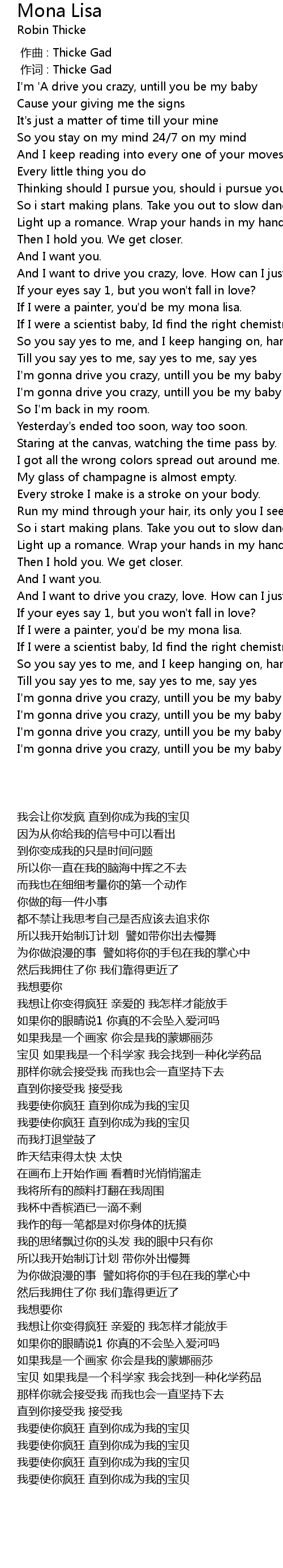 | [02:39.800] | If I were a painter, you' d be my mona lisa. |