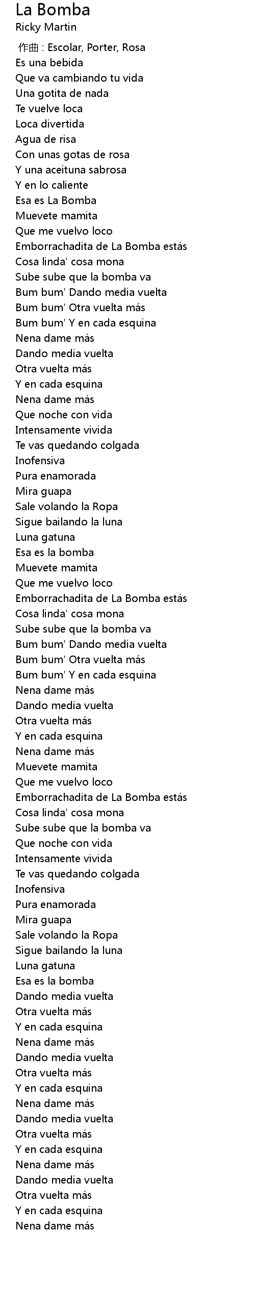 | [01:48.550] | Emborrachadita de La Bomba estás |