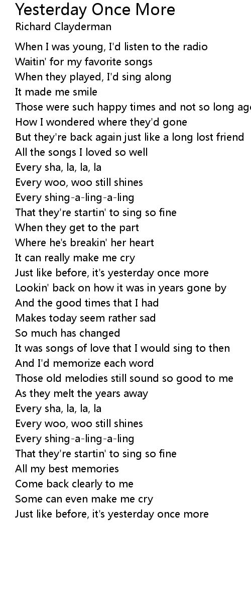 Just like before, it's yesterday once more |