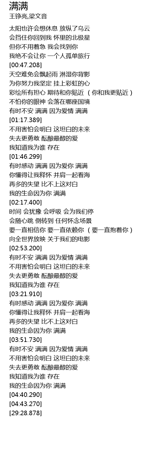 | [01:46.847] | 有时感动 满满 因为爱你 满满 |