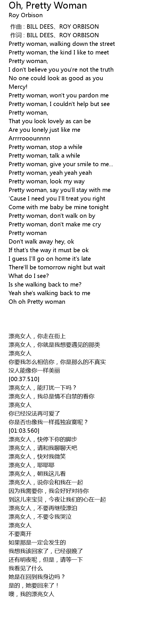 | [01:25.420] | Pretty woman, yeah yeah yeah |