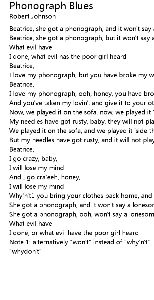 Beatrice, she got a phonograph, but it won't say a lonesome word |