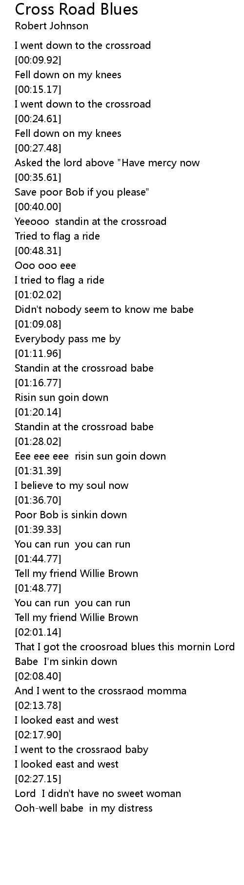 That I got the croosroad blues this mornin Lord |