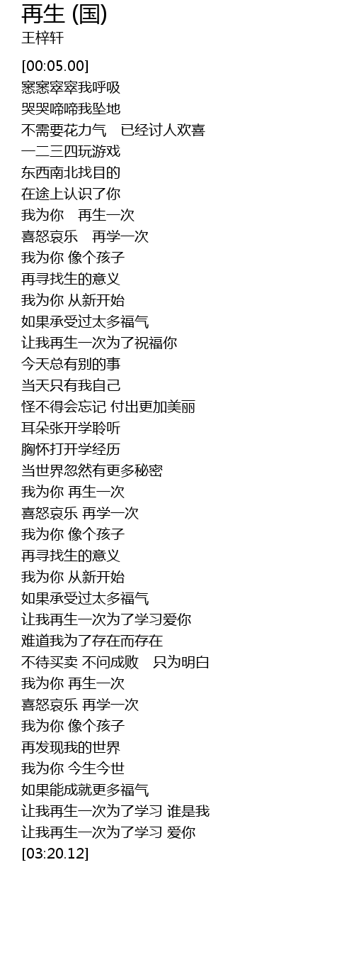 | [03:06.46] | 让我再生一次为了学习 爱你 |