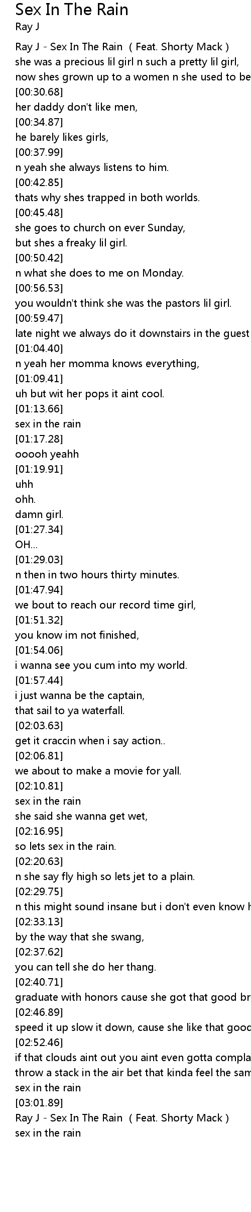 | [03:02.89] | Ray J - Sex In The Rain (Feat. Shorty Mack) |