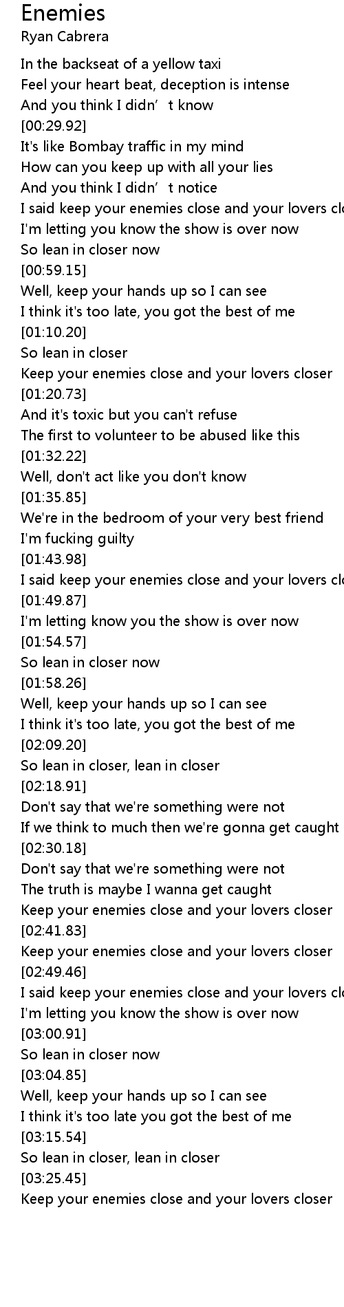 | [00:45.85] | I said keep your enemies close and your lovers closer |