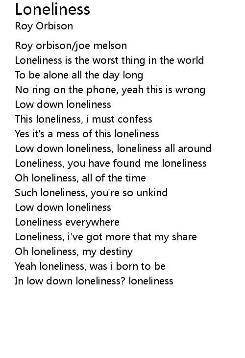 In low down loneliness? loneliness