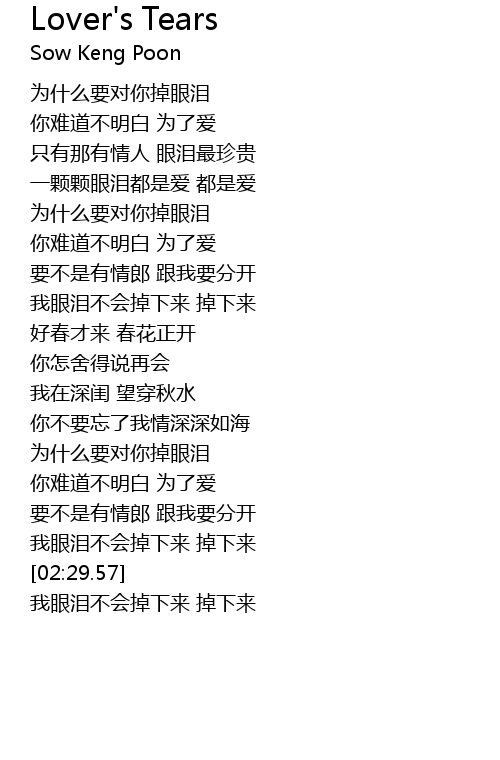 | [02:30.14] | wǒ yǎn lèi bú huì diào xià lái diào xià lái |