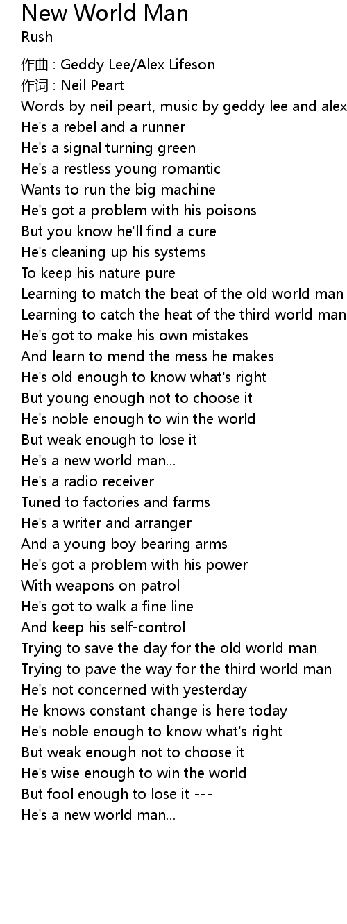 | He' s a new world man... | |