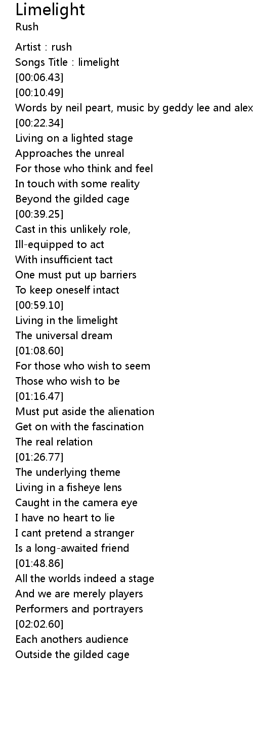| [00:12.79] | Words by neil peart, music by geddy lee and alex lifeson |