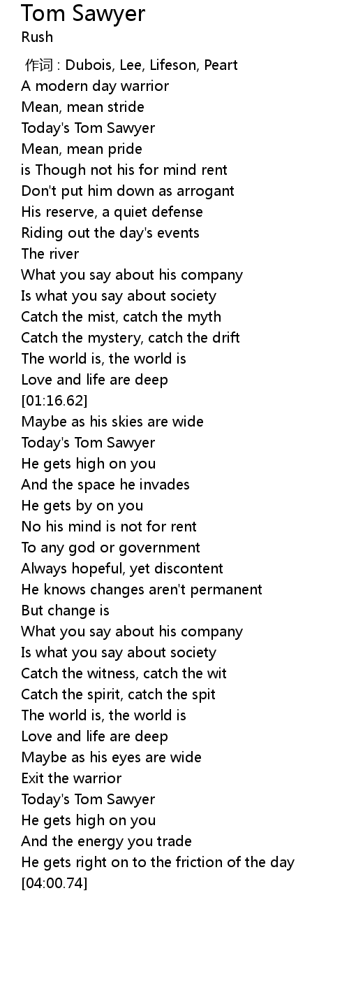 | [00:00.00] | 作词 : Dubois, Lee, Lifeson, Peart |
