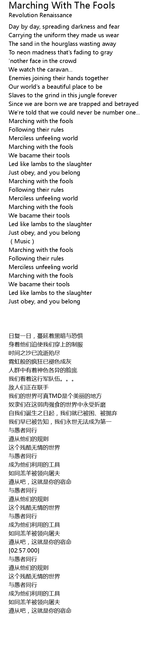 | [00:40.000] | 身着他们迫使我们穿上的制服 |