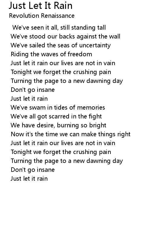 Just let it rain our lives are not in vain |