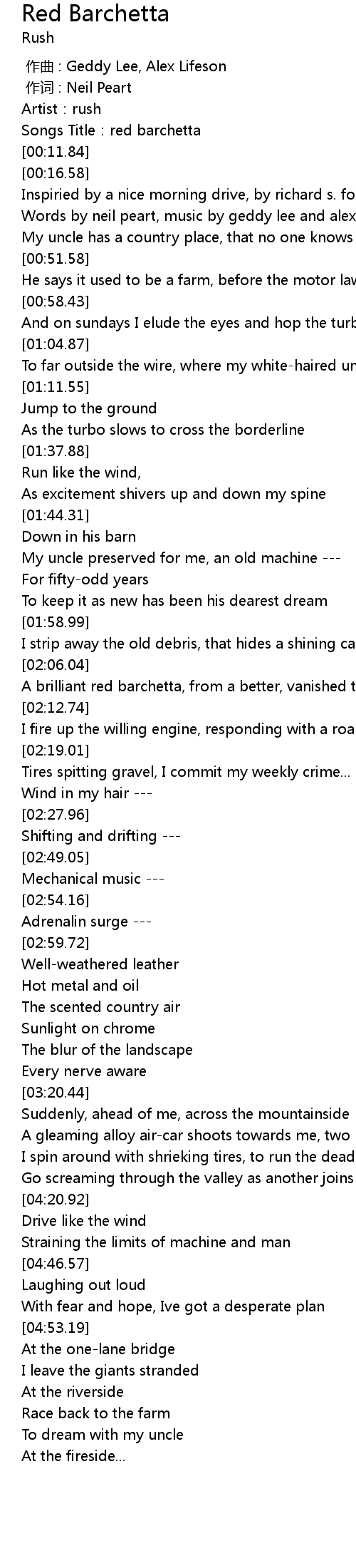 | [00:05.16] | Songs Title:red barchetta |