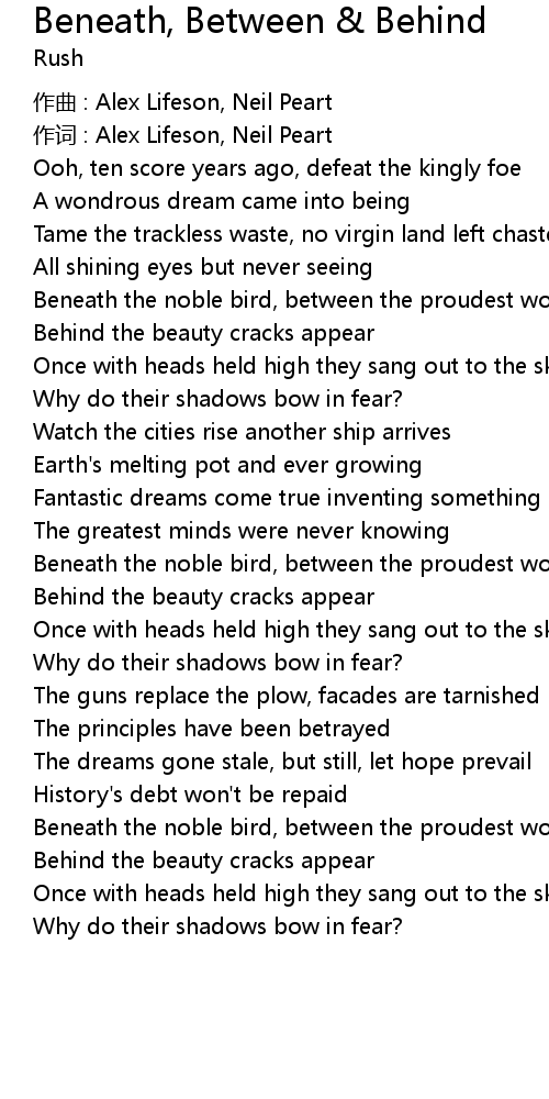| 歌曲 | Beneath, Between & Behind |