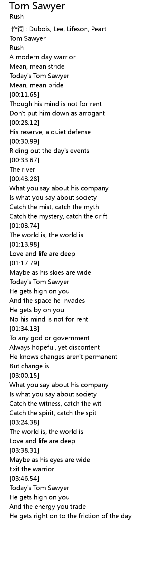 | [00:01.16] | Tom Sawyer |