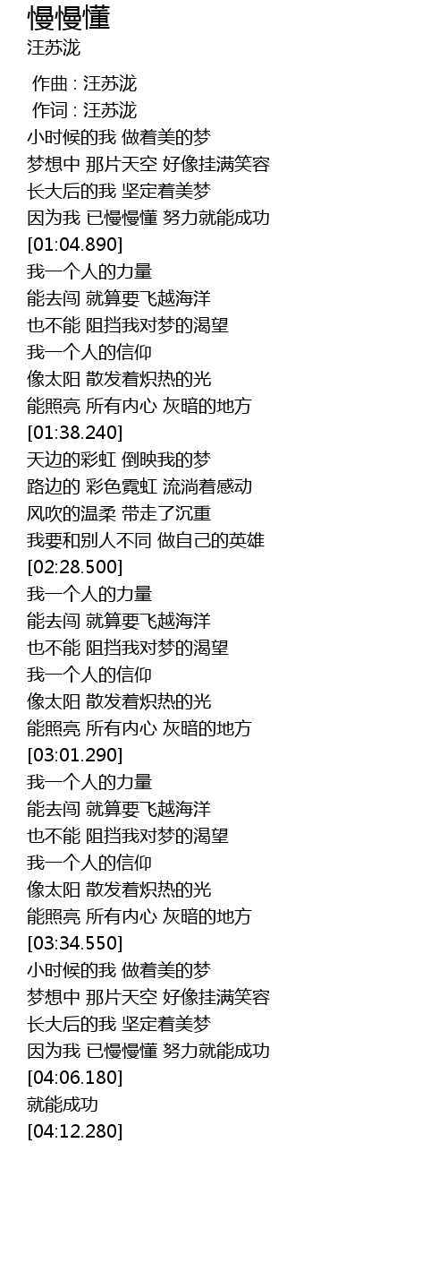 | [00:58.910] | 因为我 已慢慢懂 努力就能成功 |