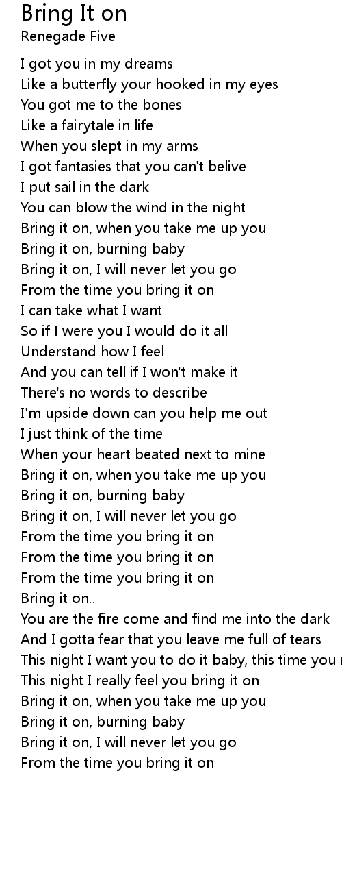 Bring it on, I will never let you go |