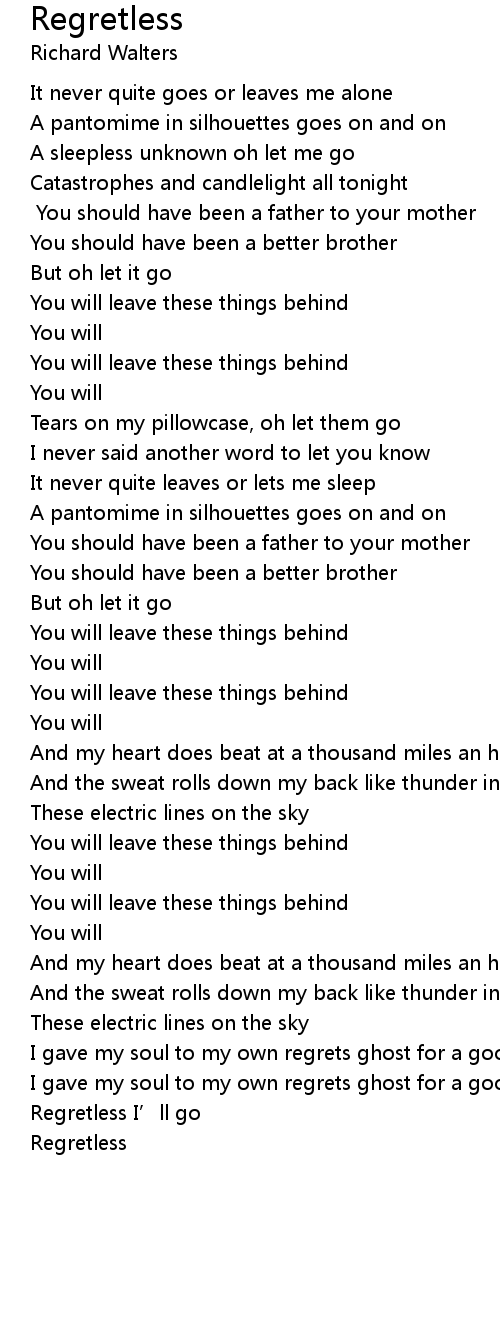 | I gave my soul to my own regrets ghost for a good nights sleep | |