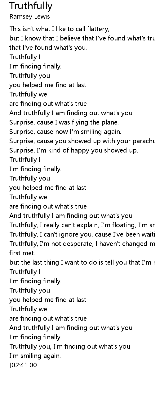 Truthfully you, I'm finding out what's you |