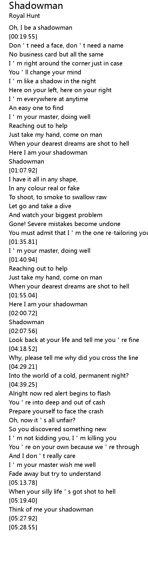 | [02:04.28] | Shadowman |