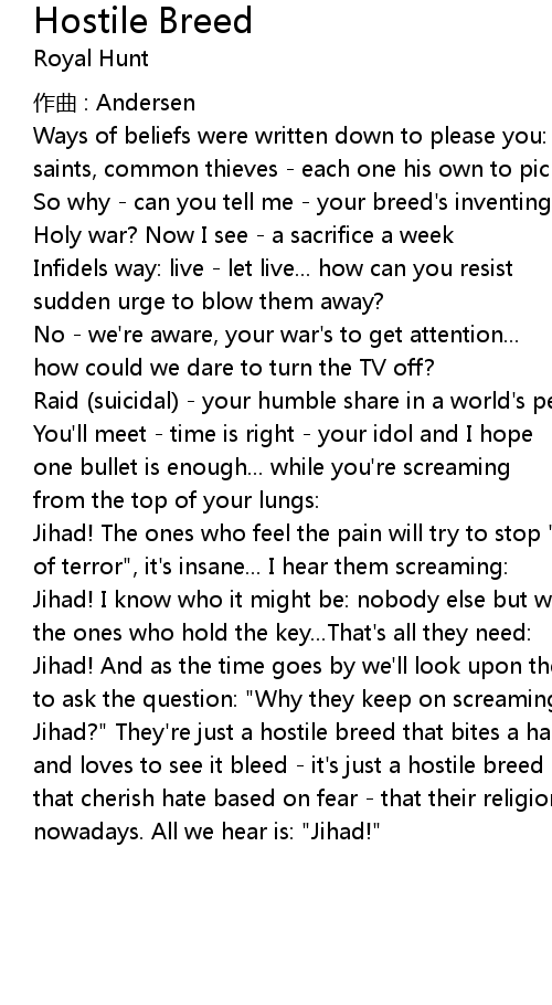 | Jihad?" They' re just a hostile breed that bites a hand that feeds | |