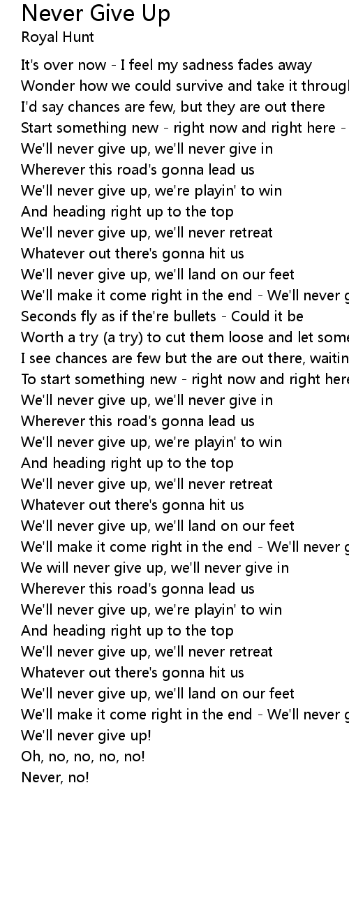 We'll never give up, we'll never retreat |