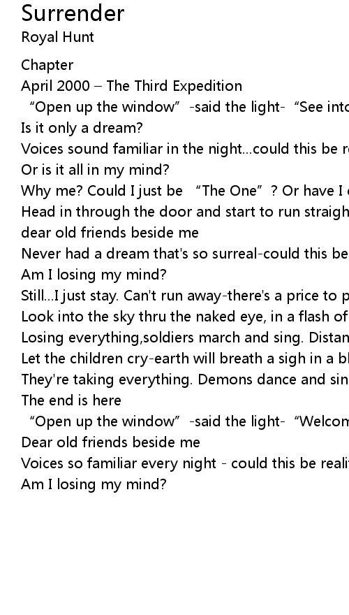 | Losing everything,soldiers march and sing. Distant bells will ring – surrender | |