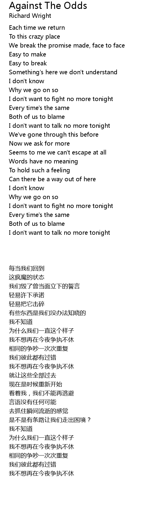 I don't want to fight no more tonight |