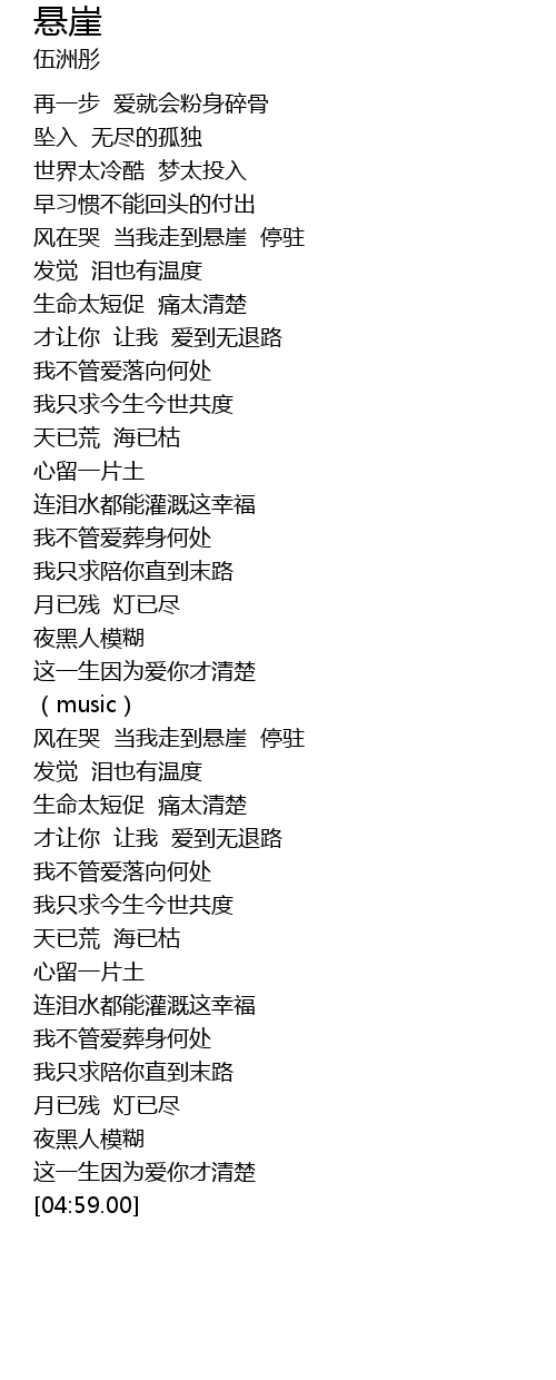 | [01:25.00] | 风在哭 当我走到悬崖 停驻 |