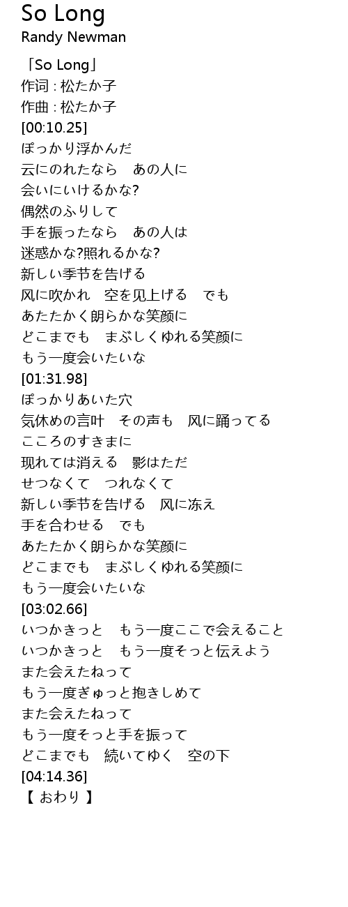 | [00:02.25] | 「So Long」 |