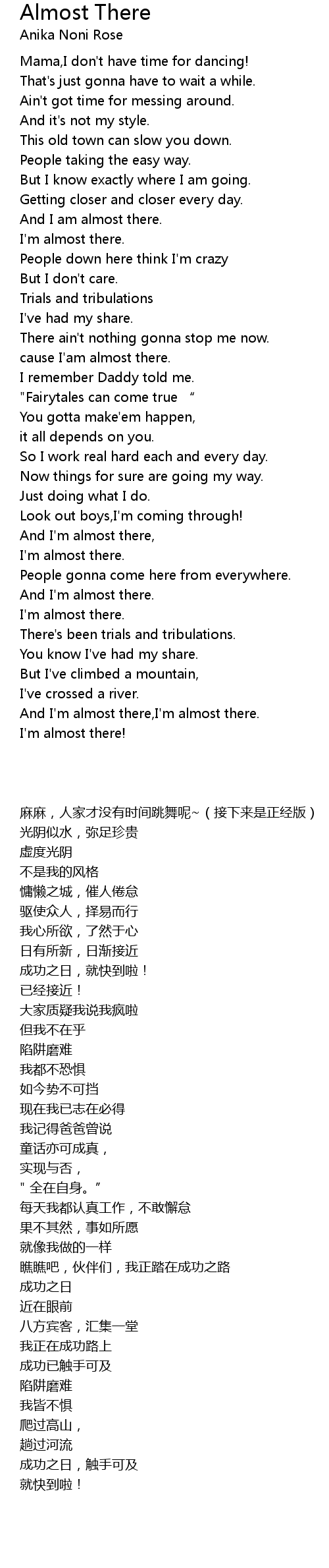 | [00:51.25] | cause I' am almost there. |