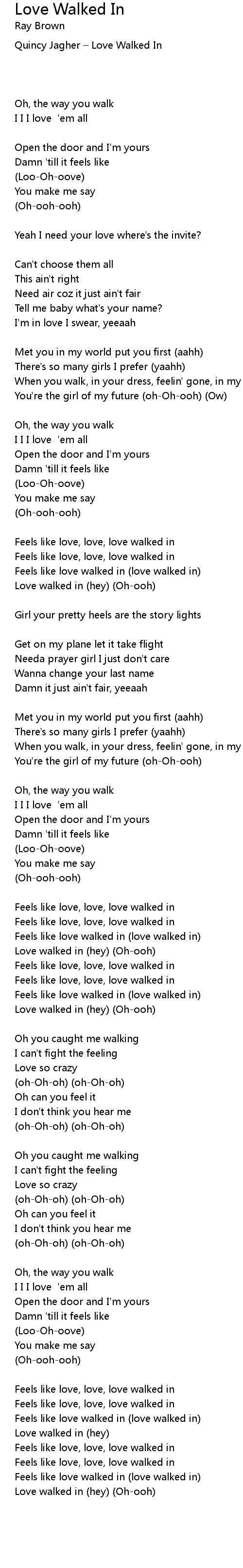 | Love walked in (hey) (Oh-ooh) | |