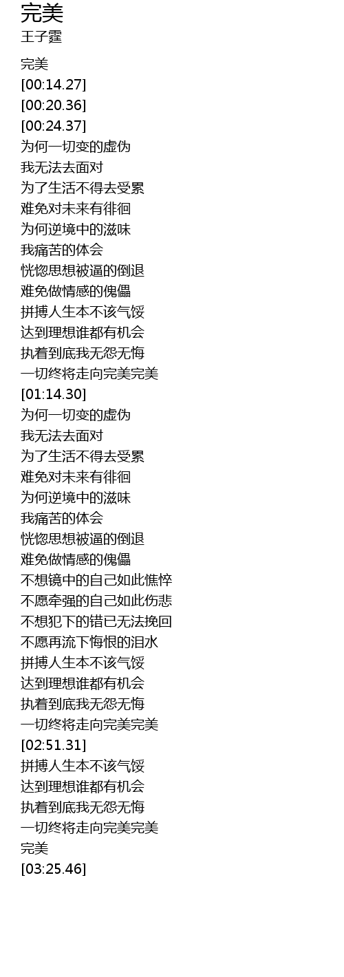 | [03:21.31] | 完美 |