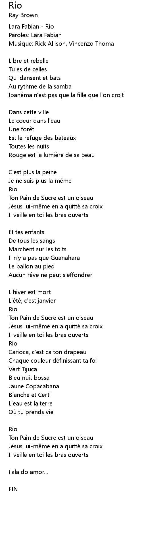 | Lara Fabian Rio | |