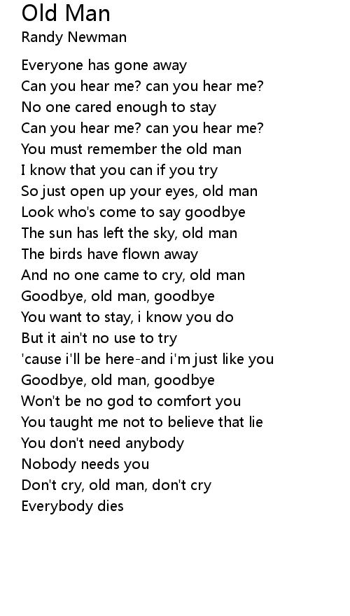 Don't cry, old man, don't cry |