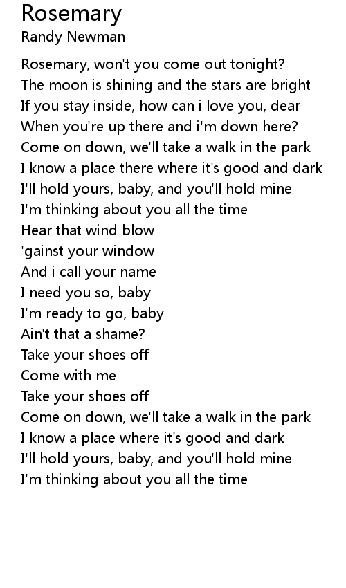Rosemary, won't you come out tonight? |