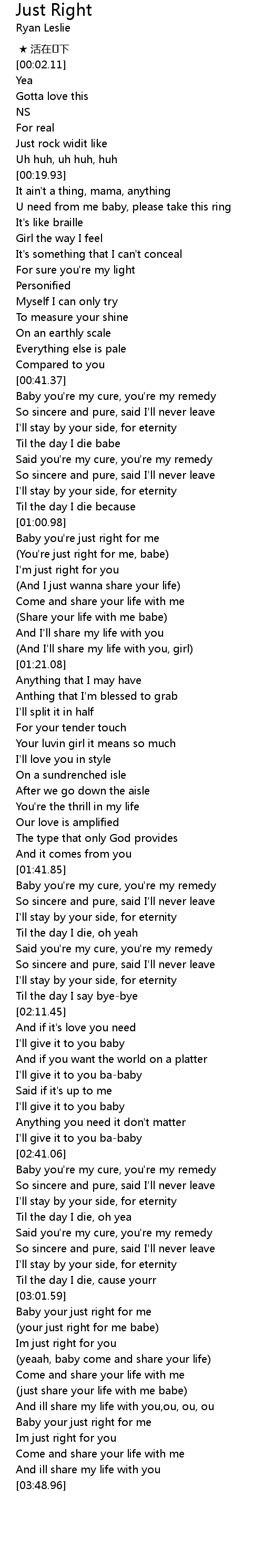 | [03:04.36] | (your just right for me babe) |