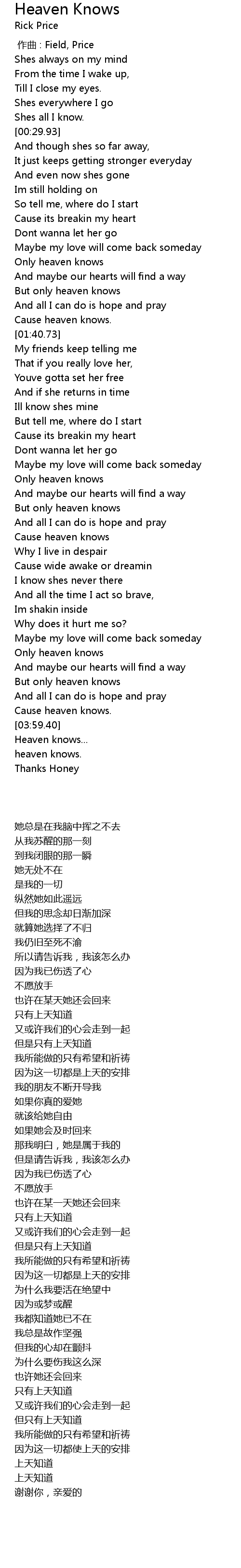 | [04:01.17] | 上天知道 |