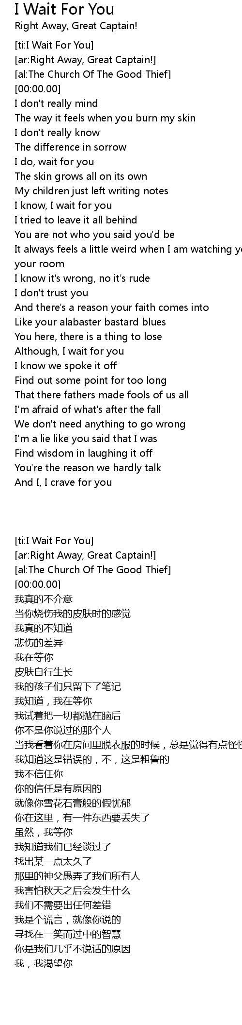 [ti:I Wait For You] |