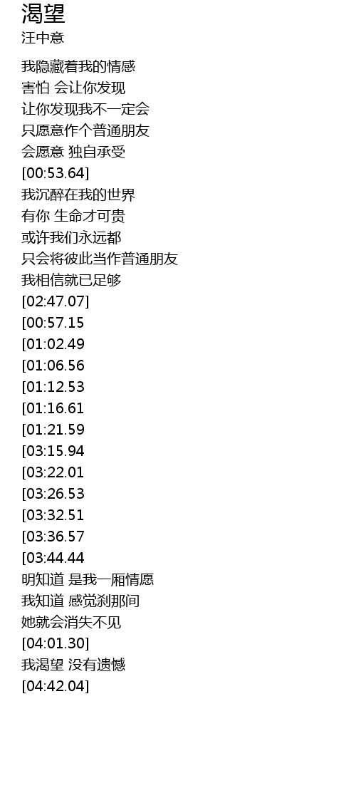 | [02:50.45][00:57.15] | 喔渴望着你那深情的拥抱 |